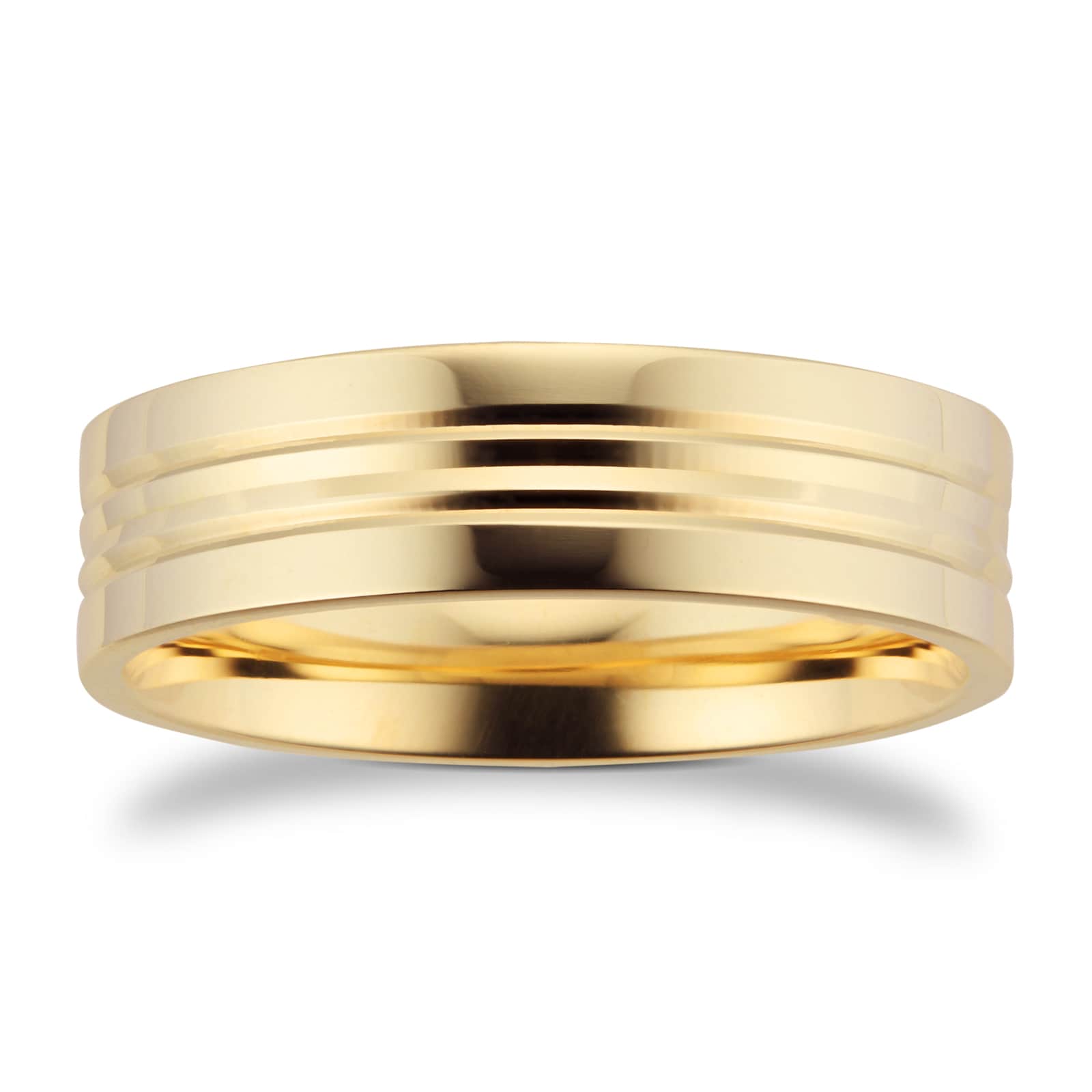 6mm Flat Court Heavy Grooved Polished Finish Wedding Ring In 9 Carat Yellow Gold - Ring Size U