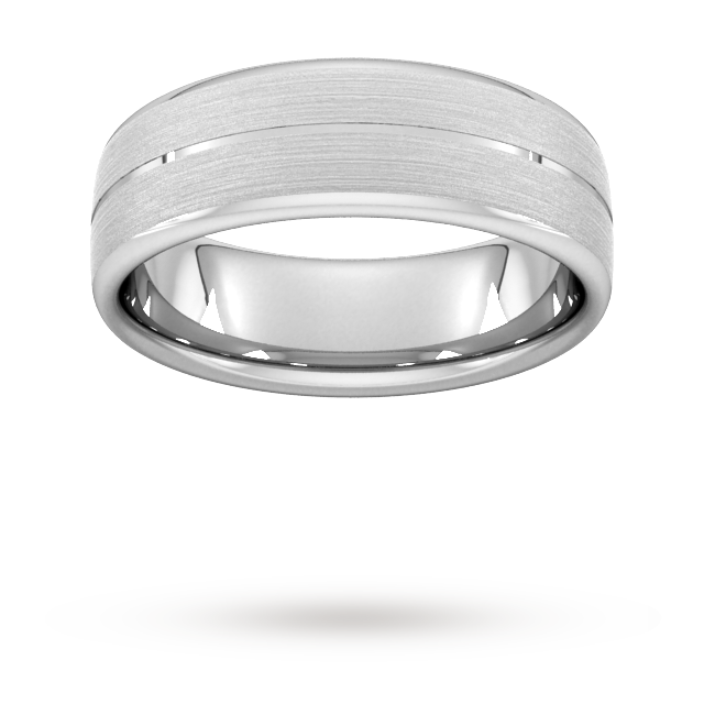 7mm Traditional Court Heavy Centre Groove With Chamfered Edge Wedding Ring In 9 Carat White Gold - Ring Size U