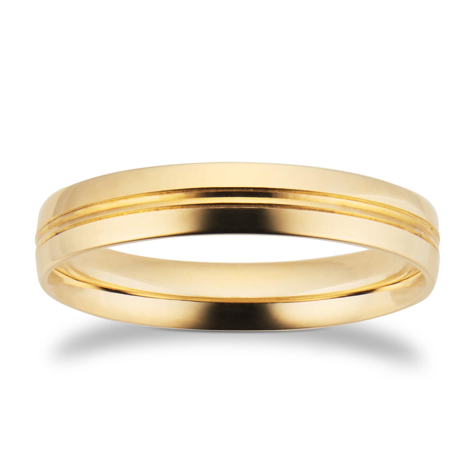 7mm D Shape Heavy Polished Finish With Grooves Wedding Ring In 9 Carat Yellow Gold - Ring Size S