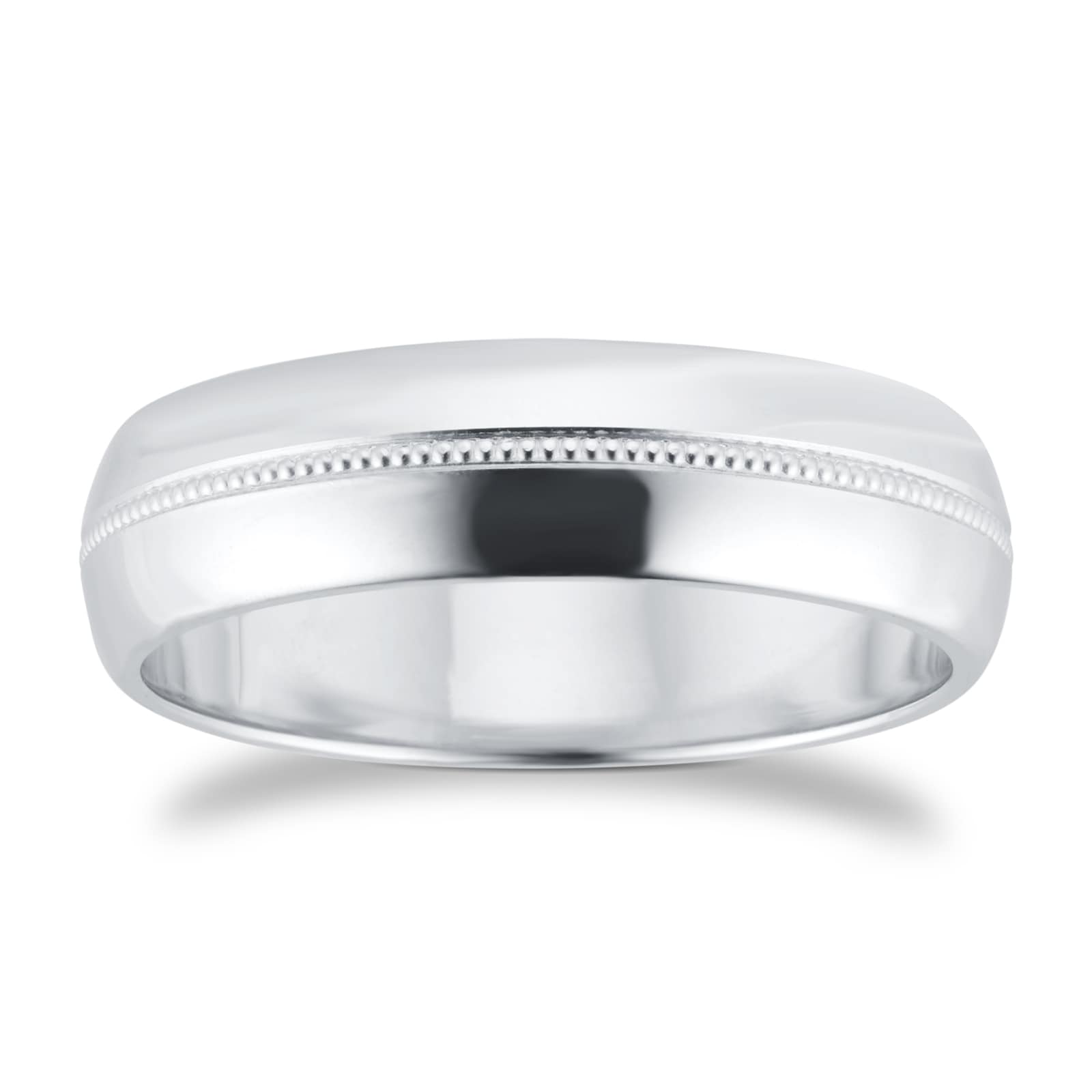 6mm D Shape Heavy Milgrain Centre Wedding Ring In 9 Carat White Gold - Ring Size N