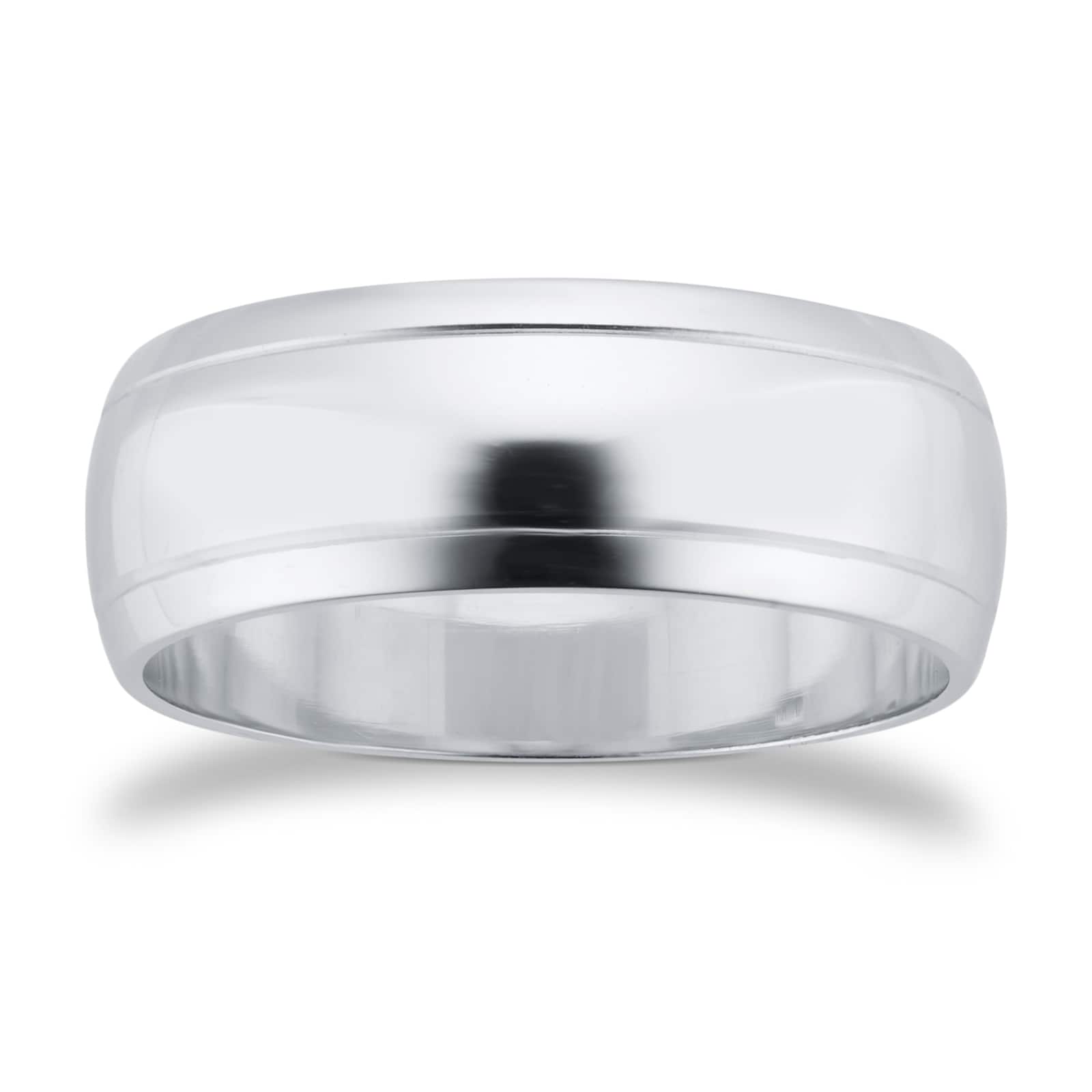 7mm D Shape Heavy Centre Groove With Chamfered Edge Wedding Ring In 9 Carat White Gold - Ring Size N