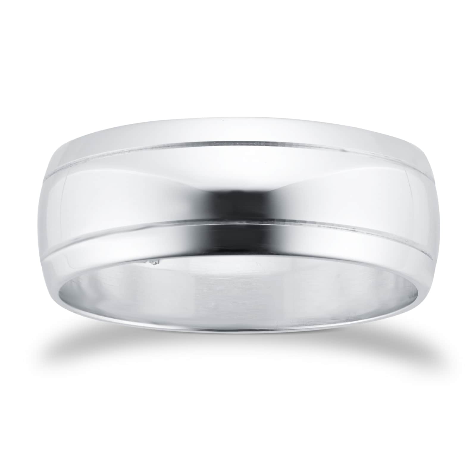 8mm D Shape Standard Polished Finish With Grooves Wedding Ring In 9 Carat White Gold - Ring Size V