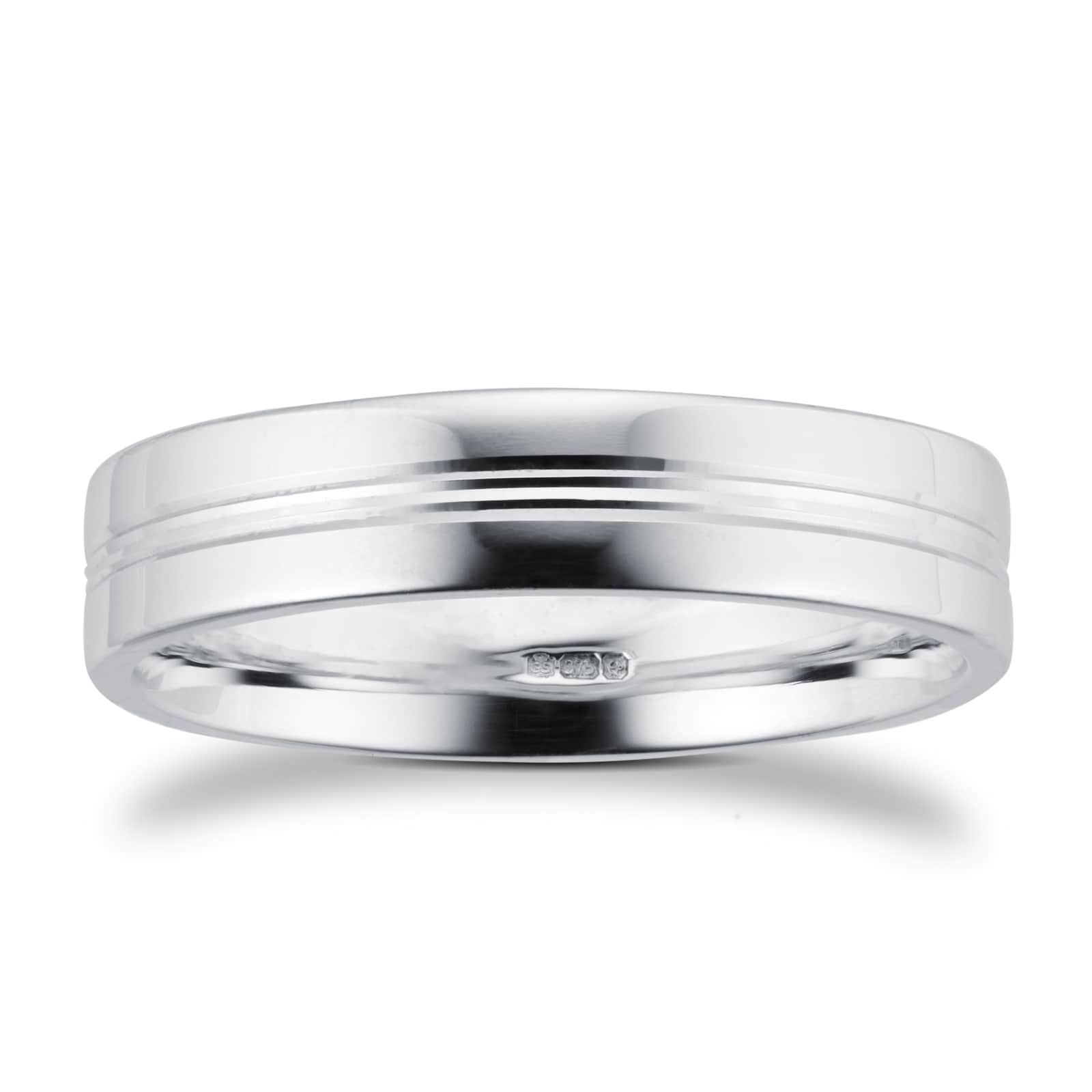 5mm Traditional Court Standard Centre Groove With Chamfered Edge Wedding Ring In 9 Carat White Gold - Ring Size S
