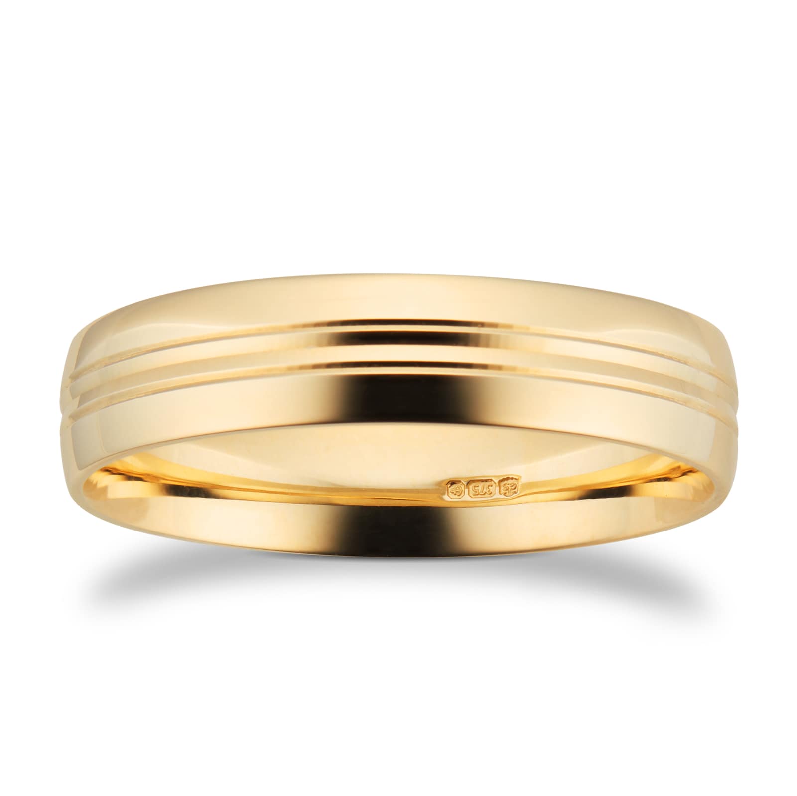 5mm Traditional Court Standard Grooved Polished Finish Wedding Ring In 9 Carat Yellow Gold - Ring Size N