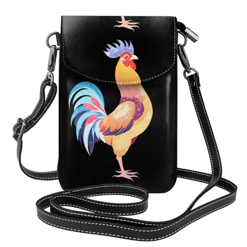 YYHWHJDE Leather Crossbody Small Cell Phone Purse 7.6x4.9in Colorful Big Cock Pattern For Walking, Camping, Shopping, Travel, And Outdoor Use