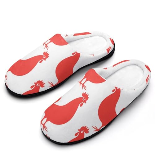 Red Cock Rooster Chicken Breathable Slippers Women Slip On Winter Warm House Slippers Shoes Bedroom 9-10(40-41)