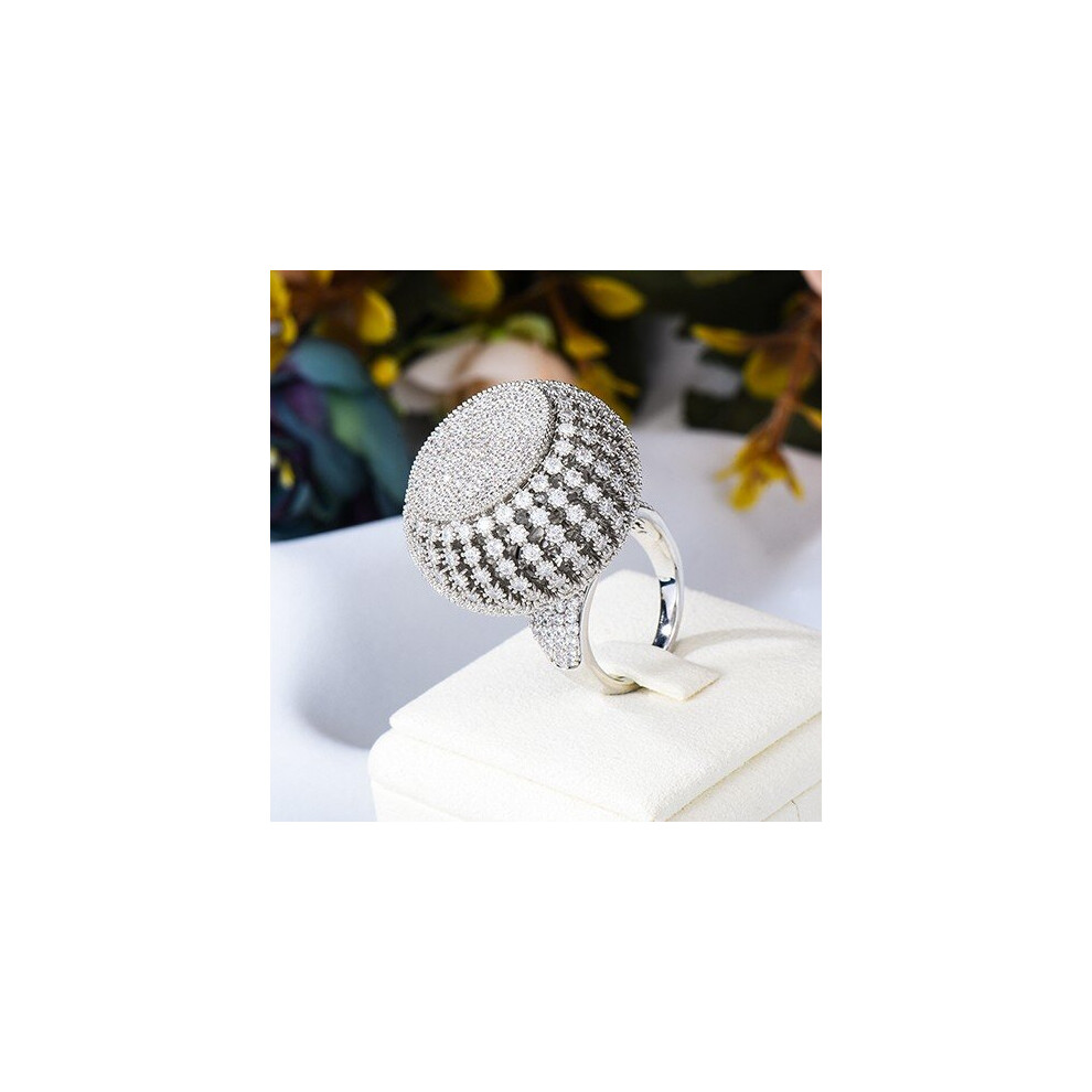 (Light Yellow Gold Color, 9) Gorgeous Big Round Rings For Women Wedding Cubic Zircon Engagement Dubai Naija Bridal Finger Ring