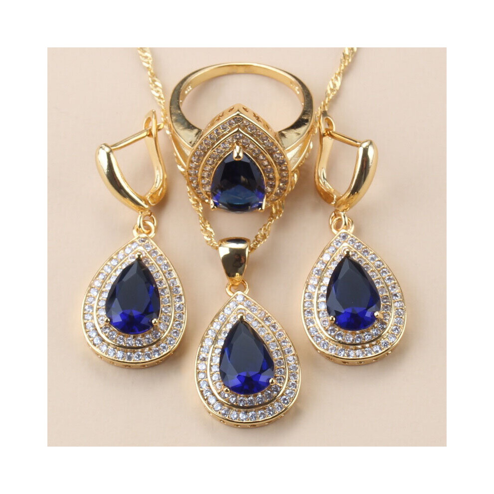 (Light Yellow Gold Color, 9) 12-Color Bridal Water Drop Accessories Garnet Earrings And Necklace Wedding Ring Dubai Jewelry Sets For Women