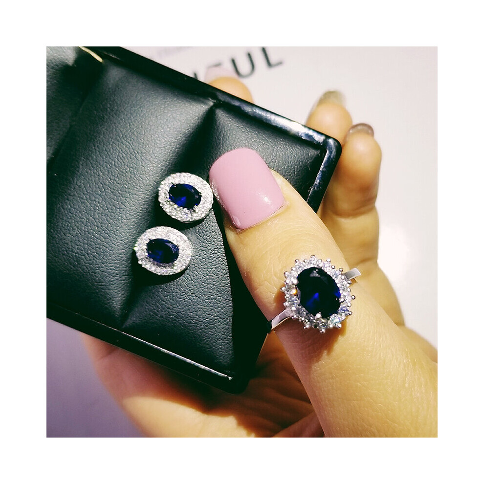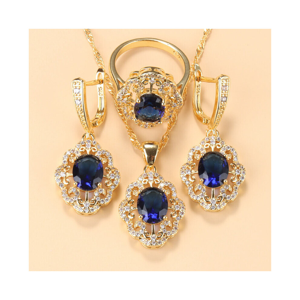 (Gold-color, 9) Pink Pink Silver Dubai Bridal Jewelry Set Oval Ring Earring for Wedding Women Indian Party Gift J4944-blue