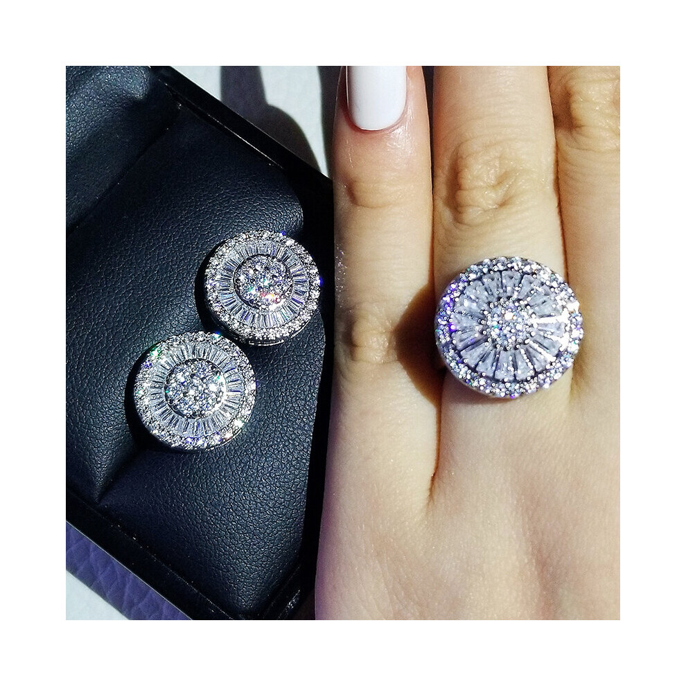 (Light Yellow Gold Color, 9) Arrivals 2pcs Silver Cz Dubai Jewelry Set Ring and Earring for Women Wedding Party Lady Gift Jewelry J5968