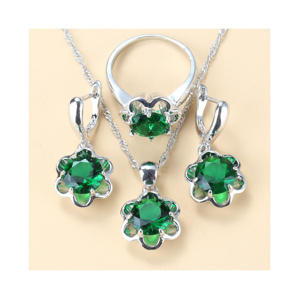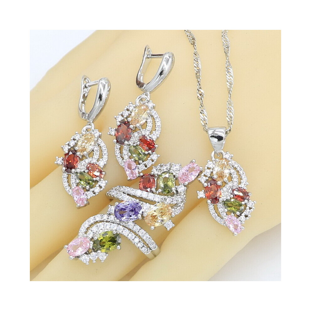 (Imitation Rhodium Plated, 9) Natural Australian Zirconia Silver Dubai Jewelry Set For Women Wedding Jewelry Gift JS0255