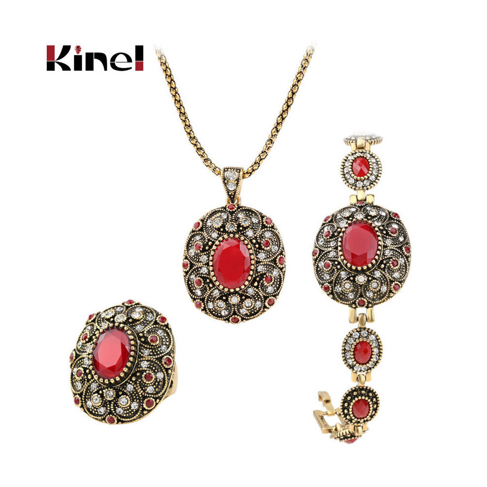(Antique Gold Plated, 9) Kinel Vintage Jewelry 3Pcs/Sets For Women Dubai Oval Wedding Jewelry Sets Engagement Party Gift Of Love
