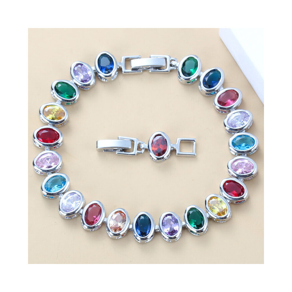 925 Mark Charm Bracelet Bangle Dubai Bridal Wedding Jewelry For Women Costume 9-Colors Adjustable Length 18+3CM