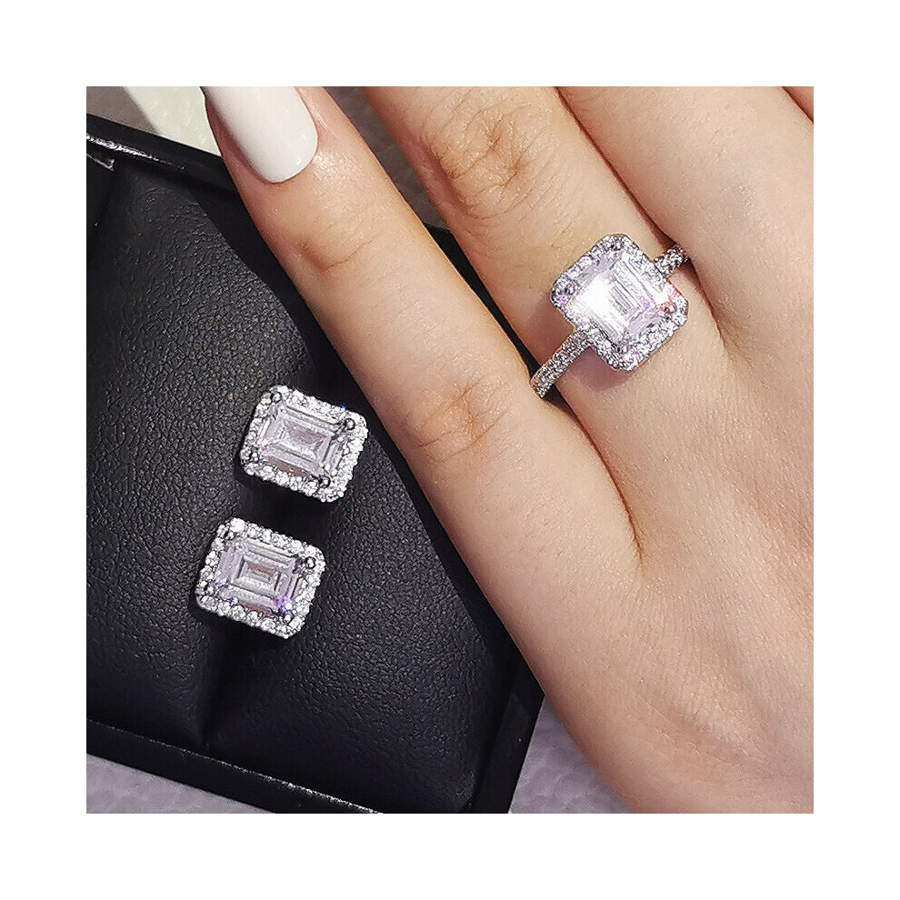 JXHSWDG Women's Earrings New Silver Color Bride African Dubai Jewelry Set Earings Ring for Women Female Wedding Christmas Party Gift (Size 9)