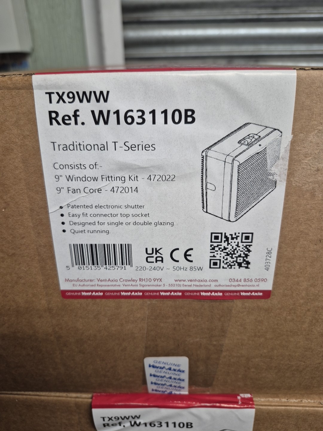 Vent Axia TX9WW T-Series 9 inch Window Fan Extractor (W163110)