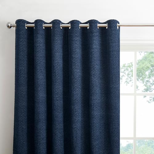 Blue 90x90" Eyelet Curtains 100% Blackout Textured Linen Look - For Living Rooms