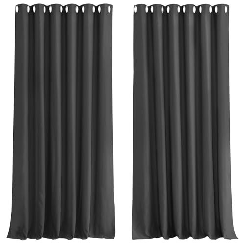 Imperial Rooms Eyelet Blackout Curtains for Living Room 90x90 Inch Grey Curtains for Bedroom Energy Saving Thermal Curtain 2 Panels with Tiebacks