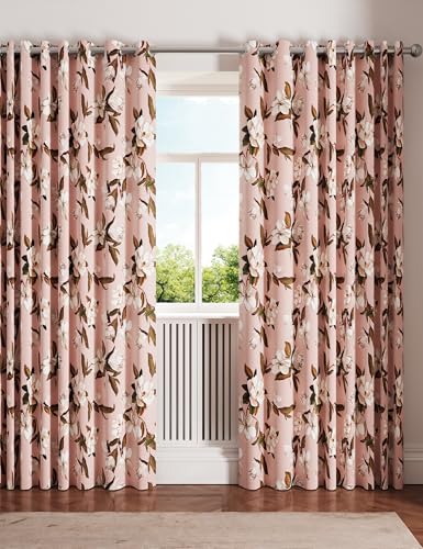 Pink 90x90" Eyelet Curtains 100% Blackout Textured Linen Look - For Living Rooms