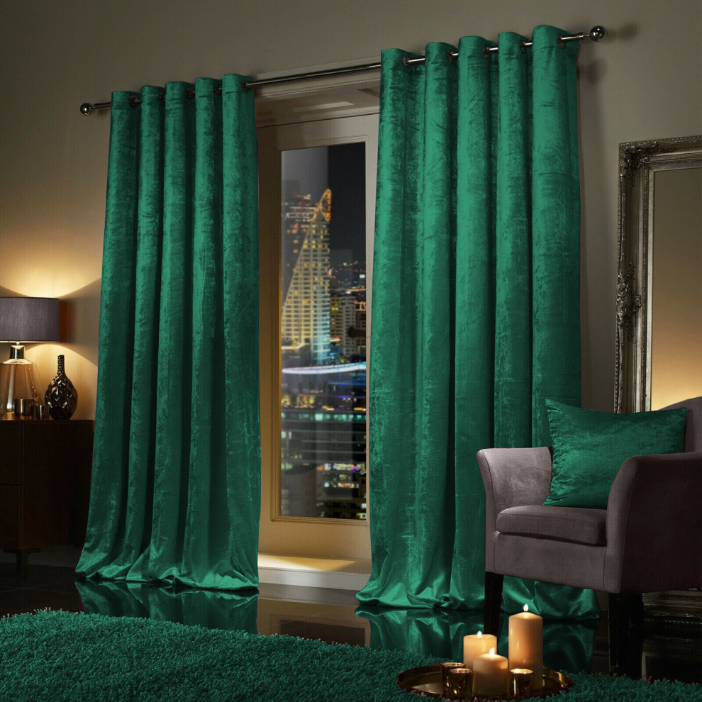 (90x90 Curtains) Velvet Curtain Eyelet Ring Top Green Curtains