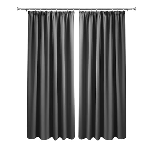 Aspire Homeware Blackout Curtains 90x90 Pencil Pleat Grey Curtains for Bedroom Thermal Insulated Super Soft Tape Top Living Room Curtain 2 Panels with Tiebacks