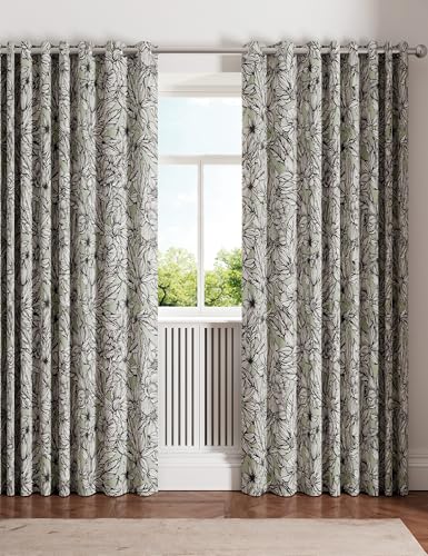 Catherine Lansfield Exotic Leaves Soft Recycled Polyester Velour 90x90 Inch Eyelet Curtains Two Panels Black