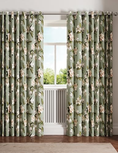 Catherine Lansfield Cullen Thermal Check Brushed Cotton 90x90 Inch Eyelet Curtains Two Panels Green