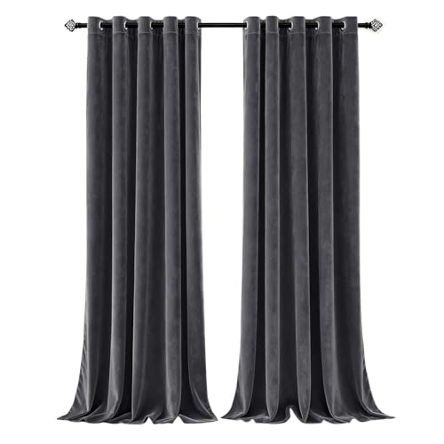 Imperial Rooms Crushed Velvet Curtains 90x90 Inch Charcoal Blackout Curtains for living room Super Soft Privacy Protection & Thermal Curtain 2 Panel with Matching Tiebacks