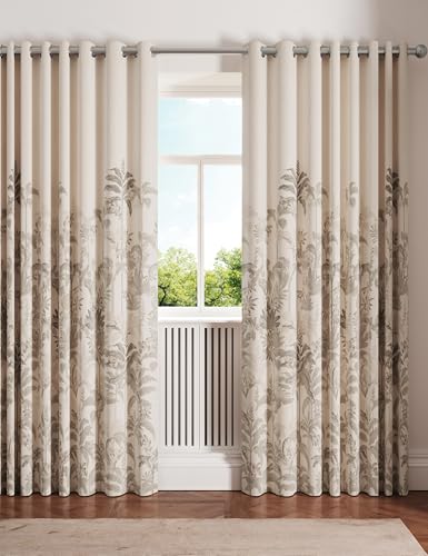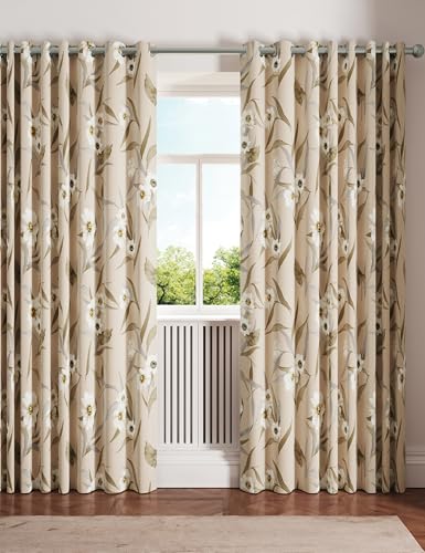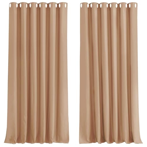 Imperial Rooms Eyelet Blackout Curtains for Living Room 90x90 Inch Beige Curtains for Bedroom Energy Saving Thermal Curtain 2 Panels with Tiebacks