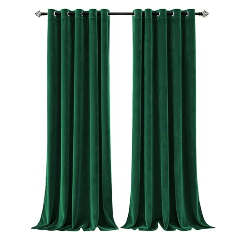 Imperial Rooms Crushed Velvet Curtains 90x90 Inch Green Blackout Curtains for living room Super Soft Privacy Protection & Thermal Curtain 2 Panel with Matching Tiebacks