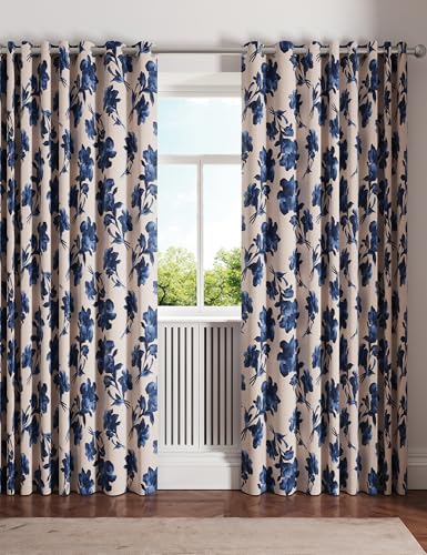 Blue Floral 90x90" Curtains Pencil Pleat 100% Blackout for Living Room/Bedroom