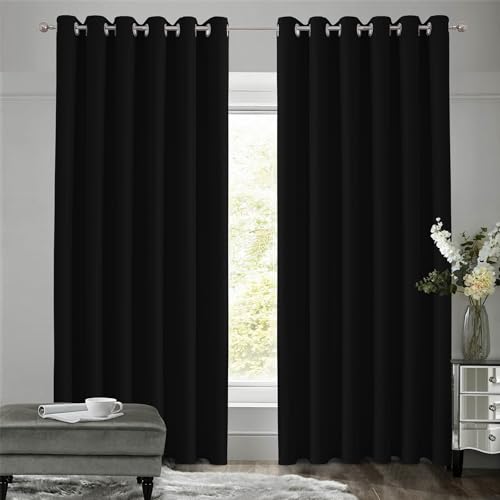 Imperial Rooms Eyelet Blackout Curtains for Living Room 90x90 Inch Black Curtains for Bedroom Energy Saving Thermal Curtain 2 Panels with Tiebacks