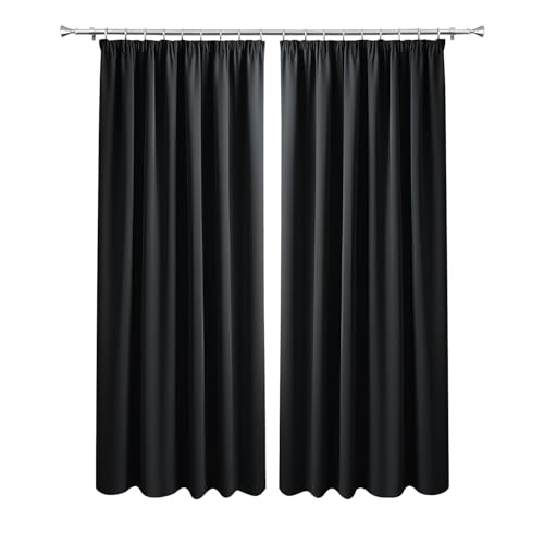 Aspire Homeware Blackout Curtains for Living Room Black Pencil Pleat Bedroom Curtains 90x90 Drop Pair of Thermal Insulated Super Soft Black Out Long Curtain with Tie Backs, 2 Panel