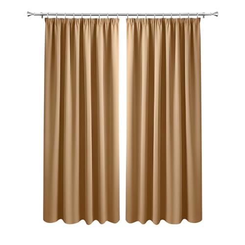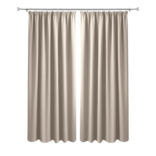 PONY DANCE 90x90 Pencil Pleat Curtains - Thermal Insulated Curtains Draperies for Kid's Bedroom Room Darkening & Noise Reducing Drapes Room Divider Living Room, 2 Panels, Biscotti Beige