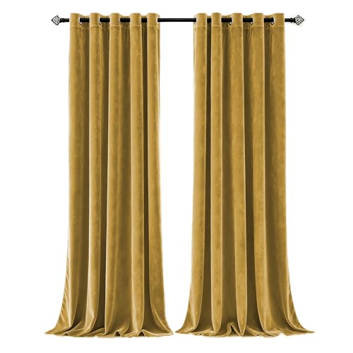 Imperial Rooms Crushed Velvet Curtains 90x90 Blackout Curtains for Living Room Fully lined Privacy Protection Eyelet Ochre Curtains Pair Panels + 2 Tie Backs