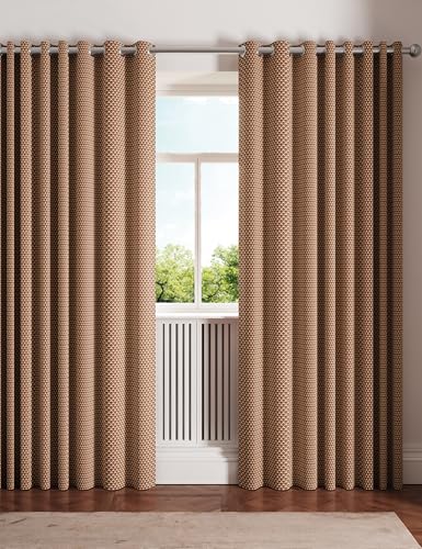 Catherine Lansfield Wilson Check Blackout Thermal 90x90 Inch Eyelet Curtains Two Panels Natural
