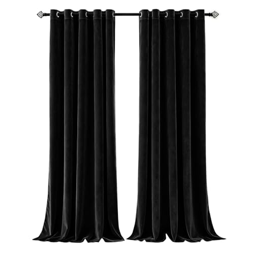 Imperial Rooms Crushed Velvet Curtains 90x90 Inch Black Blackout Curtains for living room Super Soft Privacy Protection & Thermal Curtain 2 Panel with Matching Tiebacks