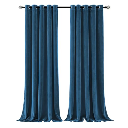 Imperial Rooms Crushed Velvet Curtains 90x90 Inch Navy Blackout Curtains for living room Super Soft Privacy Protection & Thermal Curtain 2 Panel with Matching Tiebacks