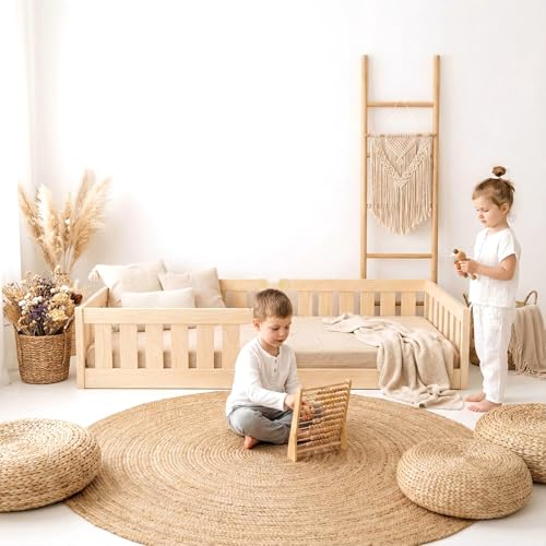 CUPCHID 205 * 95cm Toddler bed,Wooden House Bed Toddler Solid Pine Wood Modern Children Kids Junior Bed Frame (A)