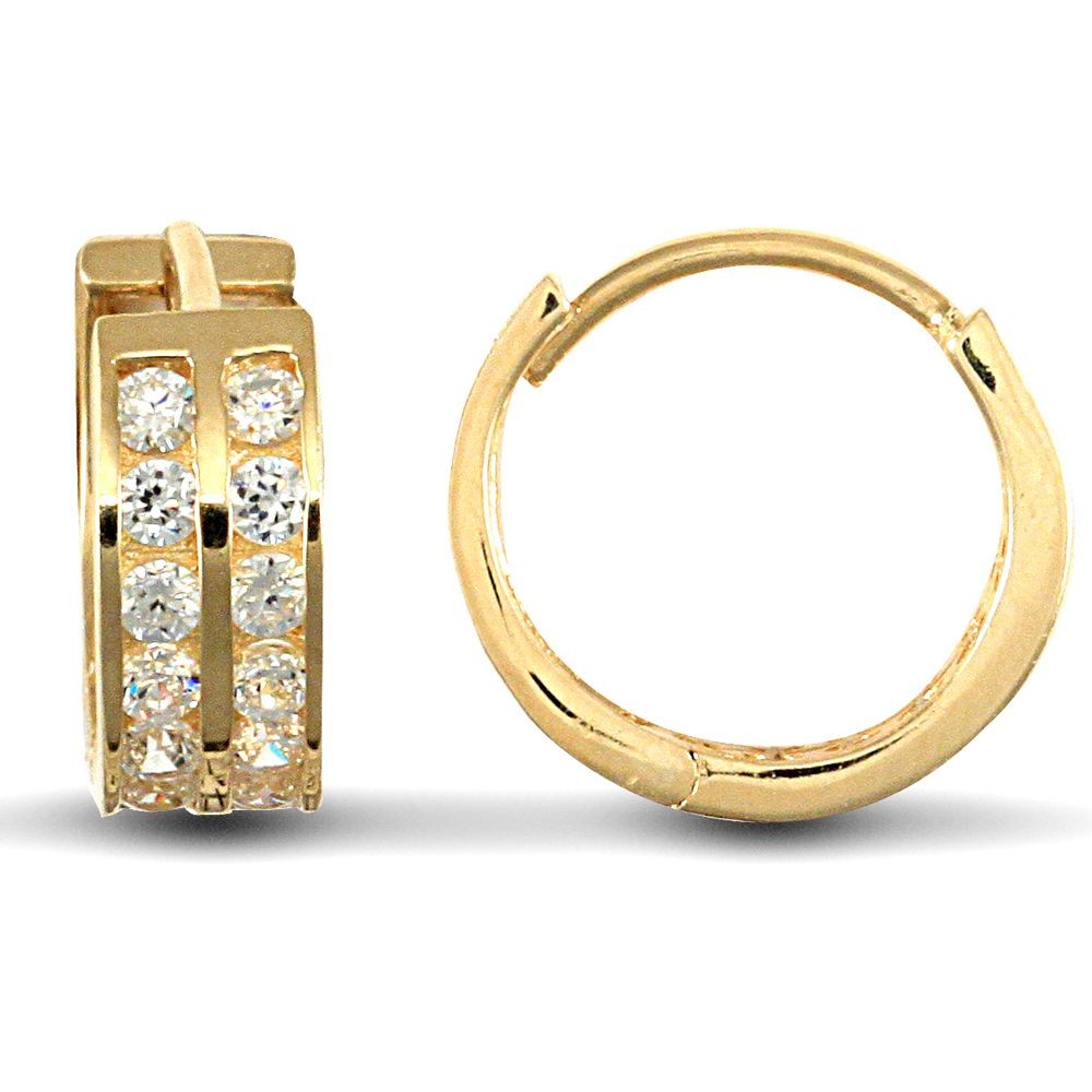 9ct Yellow Gold Cubic Zirconia Huggie Hoop Earrings
