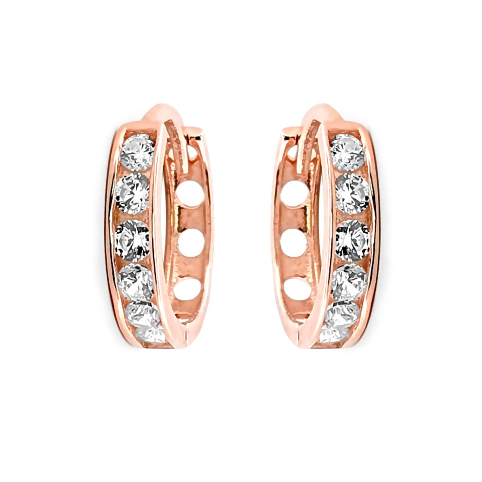 9ct Rose Gold CZ 7 Stone Eternity Huggie Hoop Earrings, 10mm - JER814