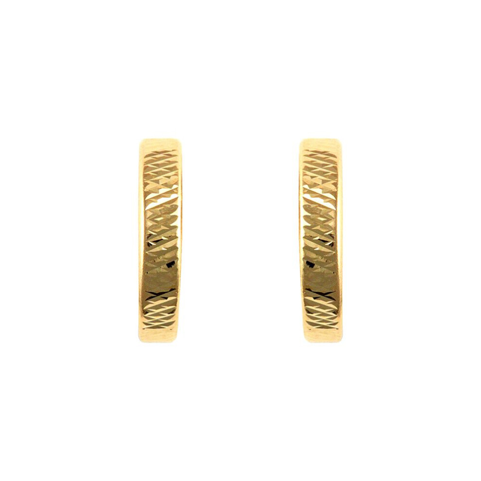 Ladies 9ct Gold Jewelco London Diamond Cut Band Semi Huggie Hoop Earrings