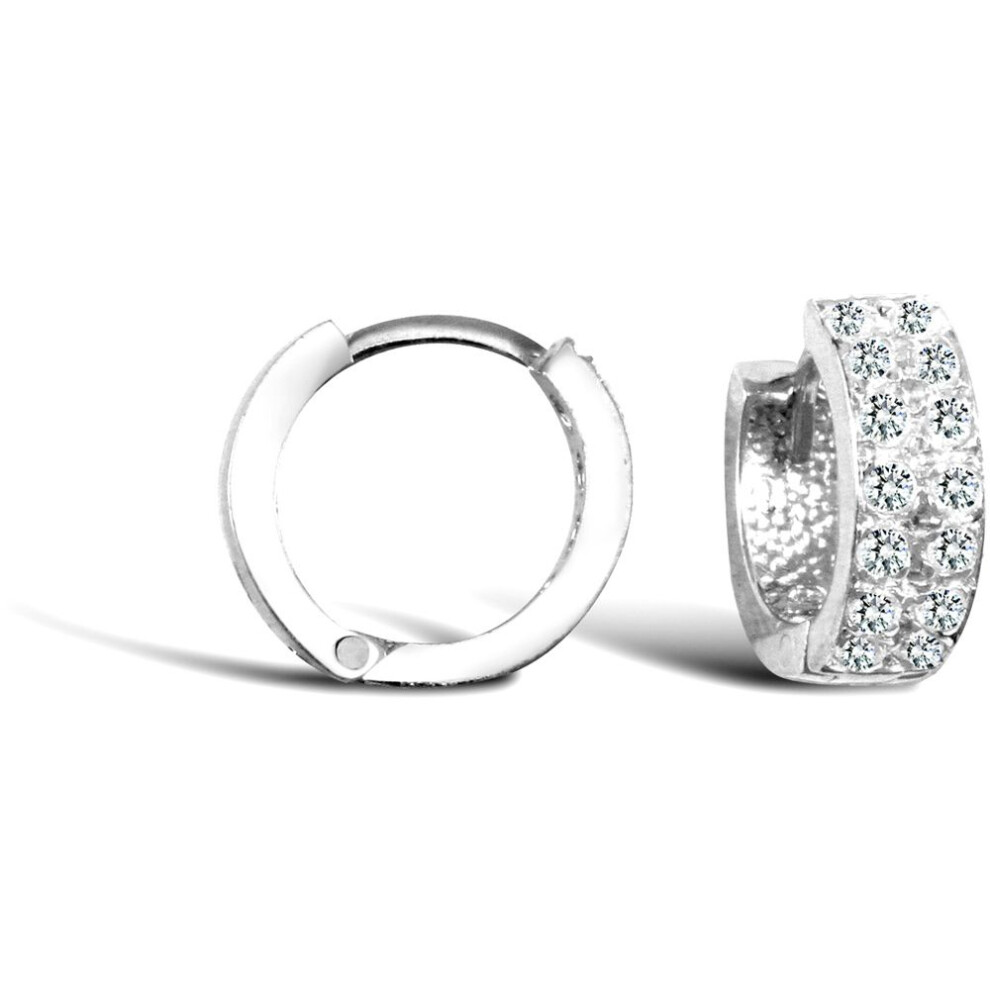 Jewelco London Ladies Solid 9ct White Gold White Round Brilliant Cubic Zirconia 2 Row Eternity 4mm Huggie Hoop Earrings 11mm - JER750