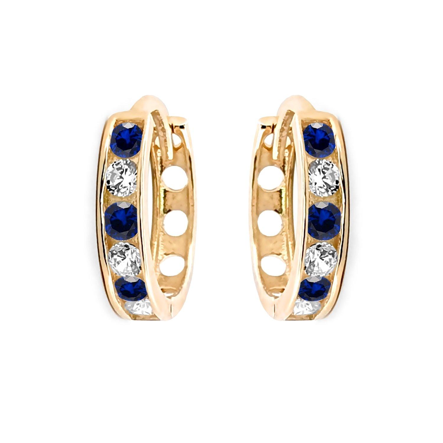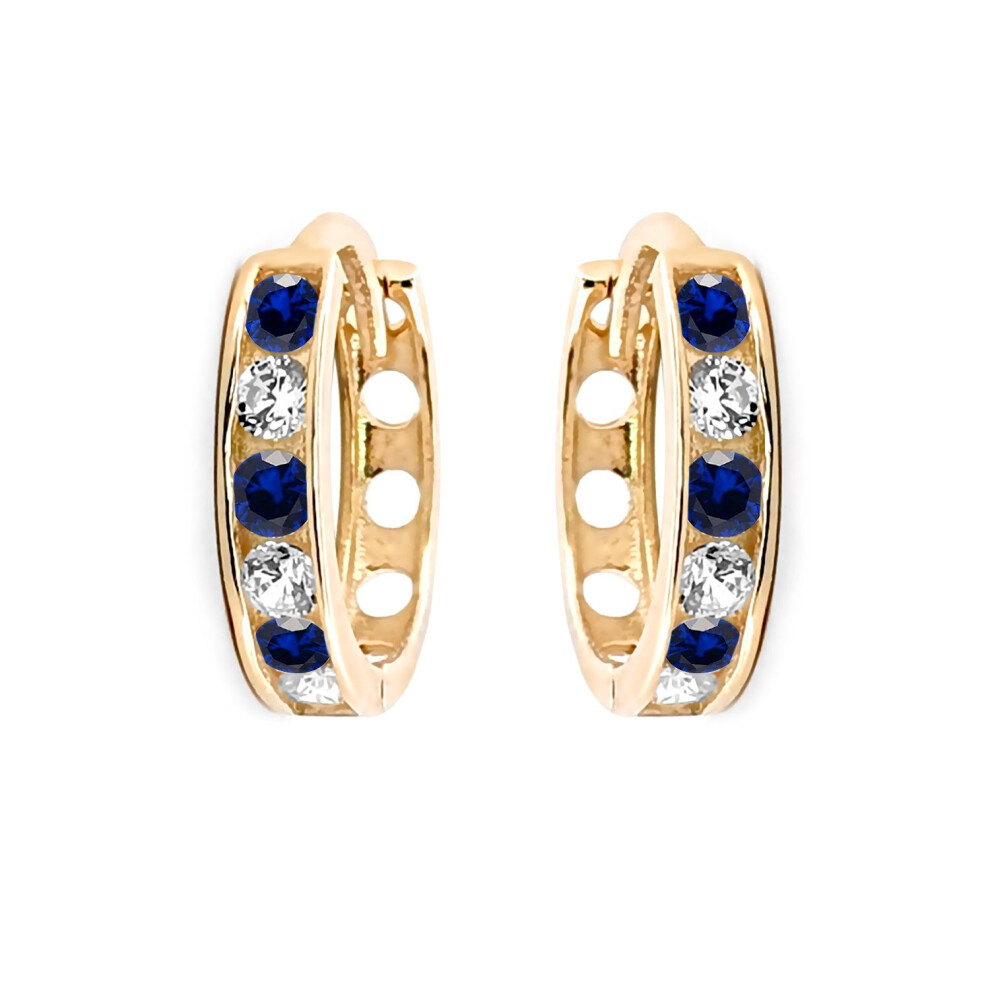 Jewelco London Ladies Solid 9ct Yellow Gold Blue Round Brilliant Cubic Zirconia Eternity 2mm Huggie Hoop Earrings 11mm - JER819