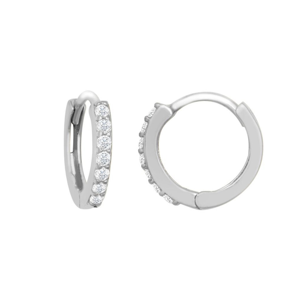 9ct White Gold CZ Eternity 2mm Huggie Hoop Earrings 11mm - JER816