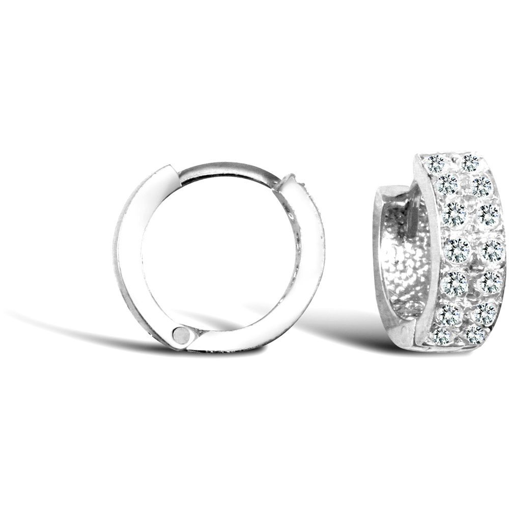 9ct White Gold Jewelco London CZ 2 Row Eternity 4mm Huggie Hoop Earrings 11mm