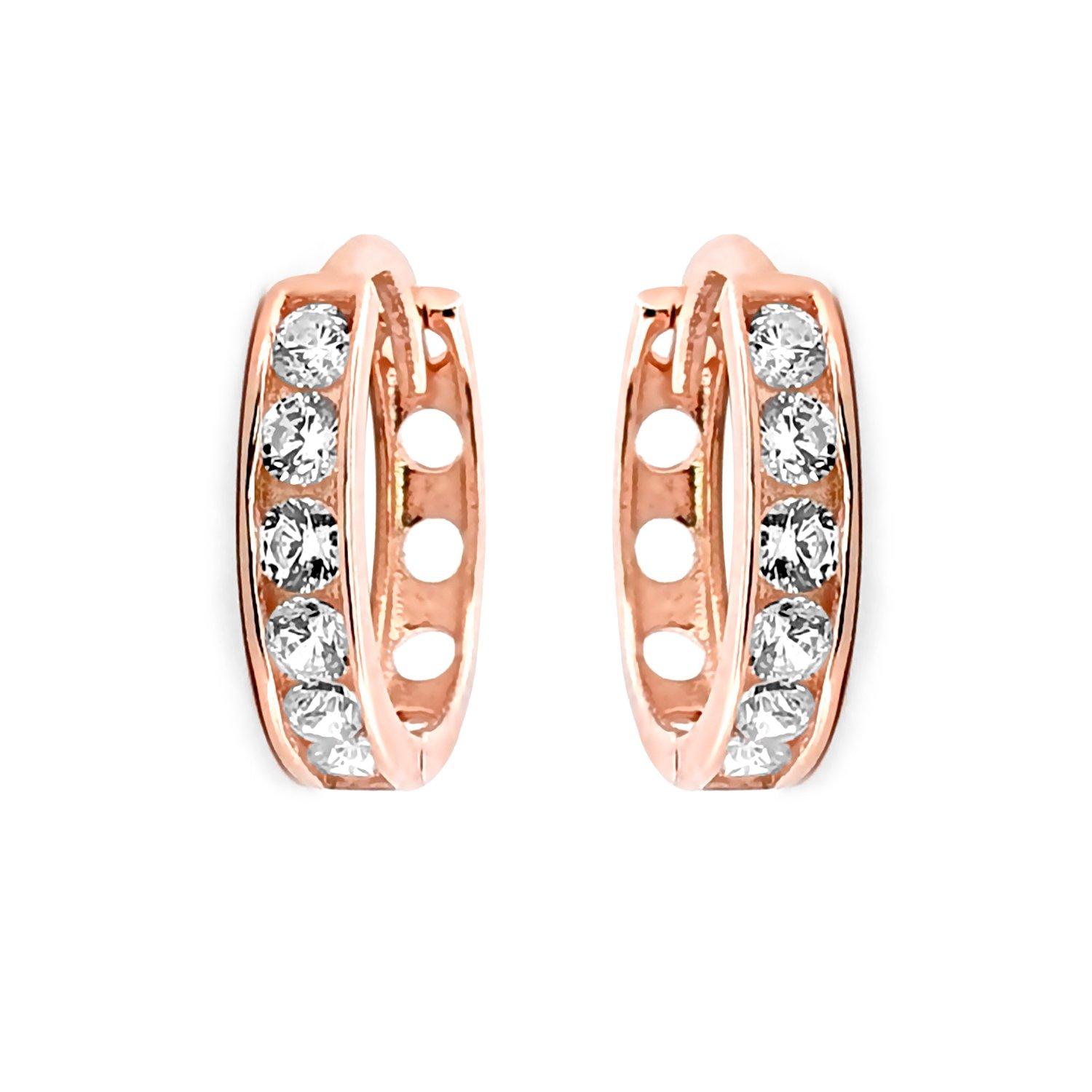 Jewelco London Ladies Solid 9ct Rose Gold Cubic Zirconia 7 Stone Eternity Huggie Hoop Earrings, 10mm - JER814