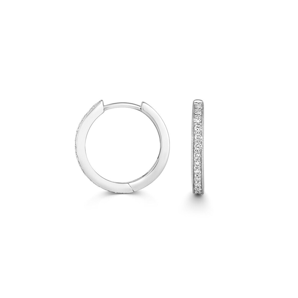 9ct White Gold Diamond Huggie Earrings 15mm Hoop Real Premium Diamonds