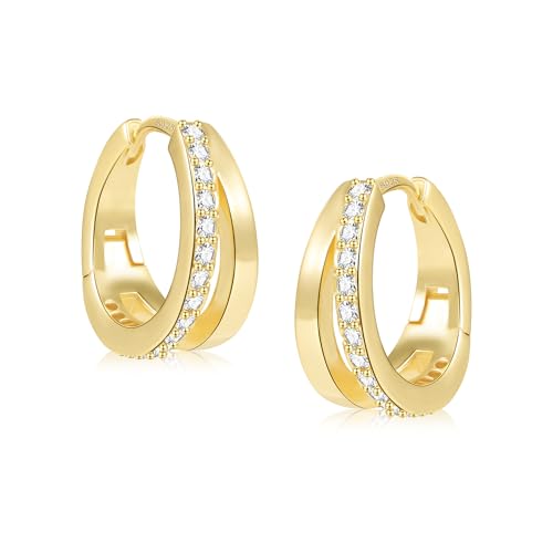 ALEXCRAFT Gold Hoop Earrings for Women Hypoallergenic Small 14K Gold Plated Lightweight Chunky Wide Diverged Cutout Double Hoop EarringsSplit Small Cubic Zirconia 9ct Gold Huggie Earrings for Women