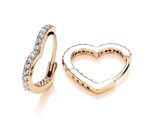 Jewelco London Ladies Solid 9ct Yellow Gold White Round Brilliant Cubic Zirconia Love Heart Huggie Earrings - JER716