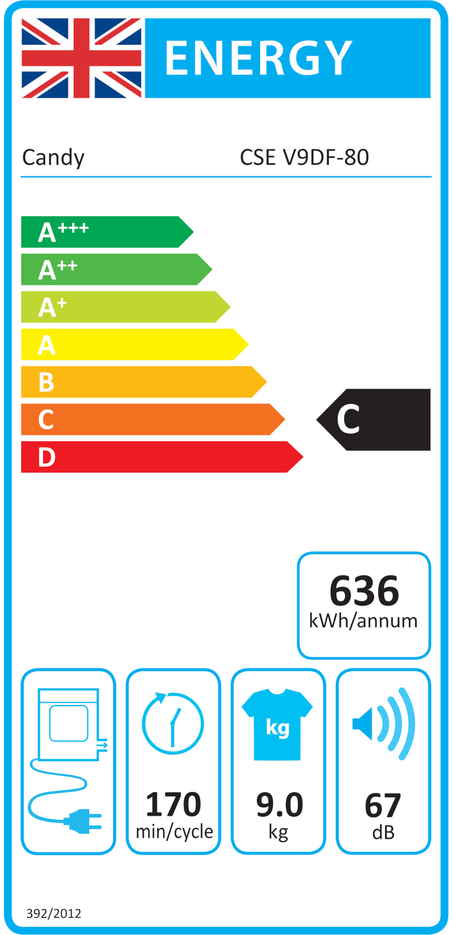 Candy CSE C9DF-80 9KG Condenser Tumble Dryer - White
